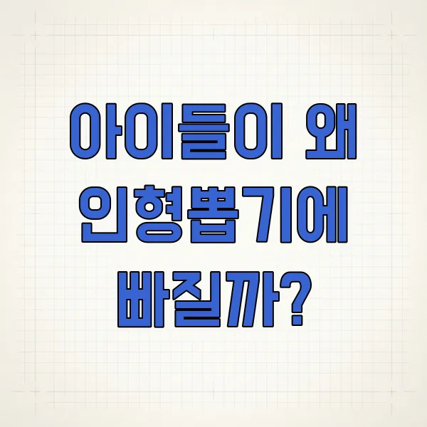 아이들이 인형뽑기에 빠지는 이유는 즉각적인 즐거움과 성취감, 좋아하는 캐릭터를 수집하는 재미, 특별한 추억 만들기 경험, 그리고 '뽑을 수 있을지도 모른다'는 기대감과 도전 정신 등 복합적인 요인이 작용하기 때문입니다. 또한, 날씨와 상관없이 즐길 수 있는 실내 활동이라는 점도 매력적입니다.