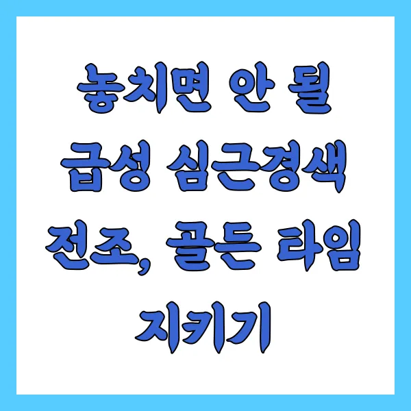 - 급성 심근경색은 정말 응급 상황입니다. 증상이 의심되면 즉시 119에 연락하고 병원으로 이동해야 해요.