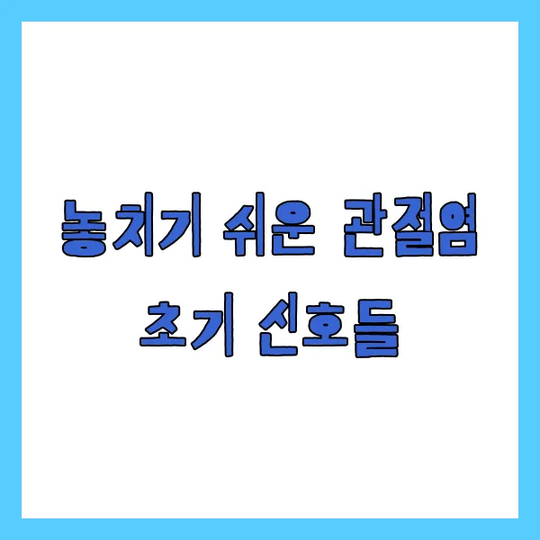 메타 디스크립션: 혹시 나도 관절염 초기 증상일까? 통증, 뻣뻣함 등 미묘한 신호를 놓치지 않고 관리하면 건강한 관절을 유지할 수 있습니다. 조기 발견으로 삶의 질을 지켜내요.