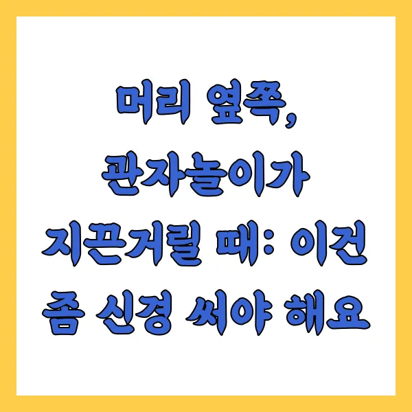 머리 옆쪽, 특히 관자놀이 부근이 욱신거리거나 찌릿찌릿한 통증을 느낄 때는 조금 더 주의 깊게 살펴볼 필요가 있습니다. 이건 단순한 두통 이상의 신호일 수 있거든요.