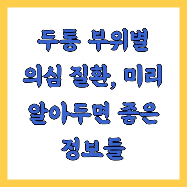 안녕하세요! 제 머리가 가끔씩 지끈거릴 때, '이게 어디가 아픈 거냐' 싶을 때가 있으셨죠? 저도 그래요. 근데 말이죠, 머리 아픈 부위에 따라서 우리 몸이 보내는 신호가 다르다고 하더라고요. 그래서 오늘은 두통 부위별 의심 질환에 대해 제가 경험하고 알게 된 것들을 여러분과 함께 이야기 나눠보려고 합니다. 머리가 아플 때, 내 몸이 보내는 작은 신호들에 귀 기울여주는 습관 , 정말 중요하답니다. 이걸 알면 혹시 모를 심각한 질환을 조기에 발견하는 데도 도움이 될 수 있거든요.